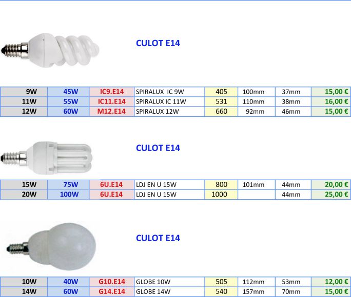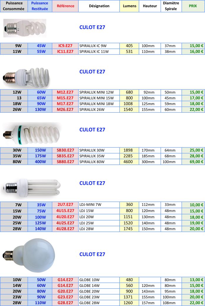 Existent en gros culot E27, petit culot à vis e14 et à baïonettes B22
