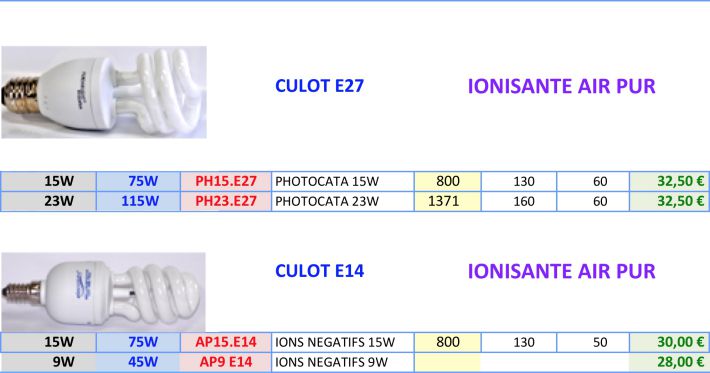Identique à celui des lampes de Luminothérapie.