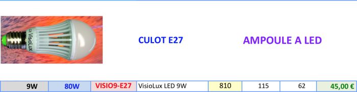 Compatible avec les fixations incandescentes standart à visser